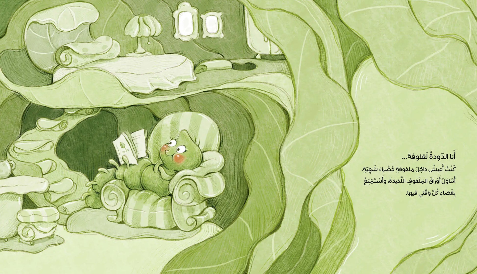 لفلوفة، دودة خضراء صغيرة تعيش بسلام داخل ملفوفة، إلى أن يكتشفها ثلاثة أطفال فضوليون، ويبدأ كل منهم باقتراح طريقة للتعامل معها! تخاف لفلوفة عندما يضعها الأطفال في إناء زجاجي، فتفكر بطريقة ذكية للهروب